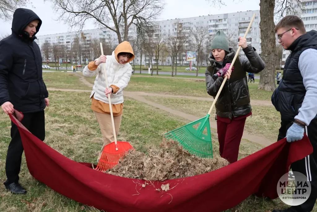 В ожидании традиционного весеннего Республиканского субботника, который пройдет в Беларуси 18-го апреля, лицеисты, студенты и работники во главе с ректором ВГУ Валентиной Богатырёвой продемонстрировали подлинную сплочённость и ответственное отношение к своему учебному и рабочему пространству, организовав уборку уже сегодня.